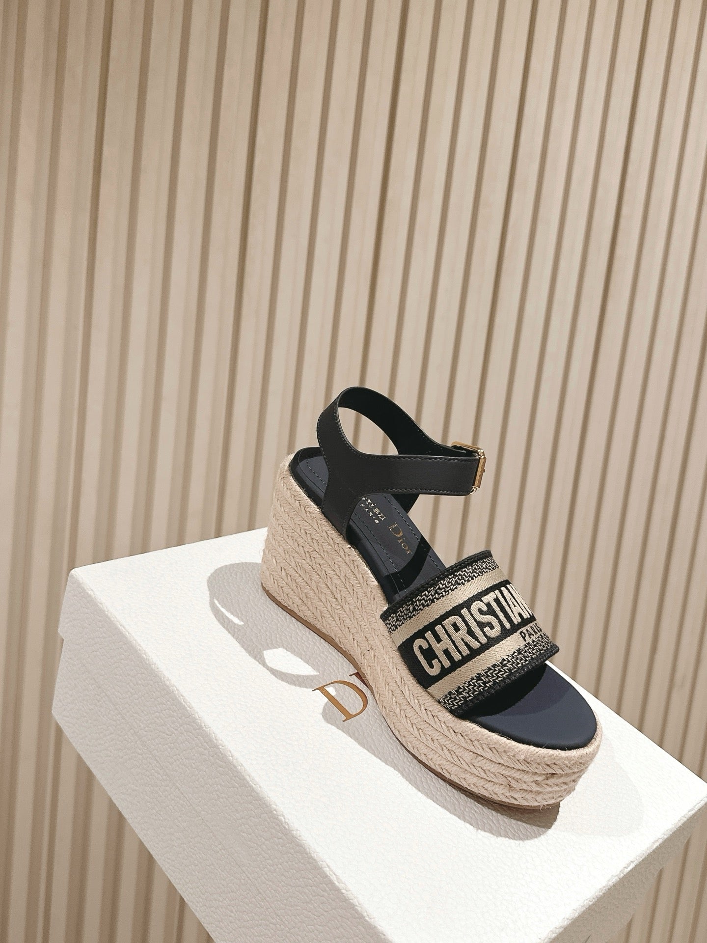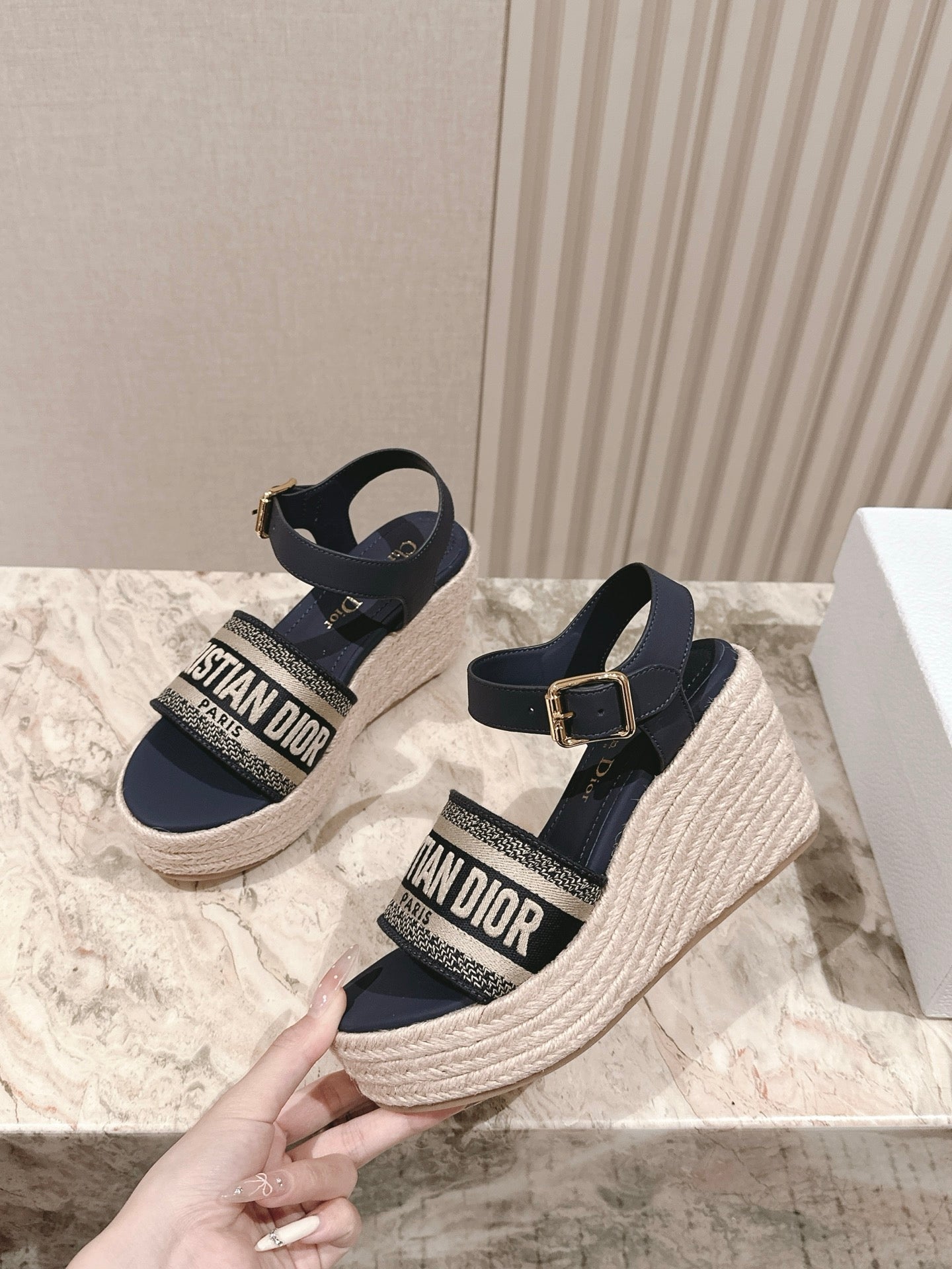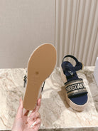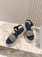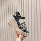 CD Dway Wedge Sandal 85mm Deep Blue Calfskin and Embroidered 483077