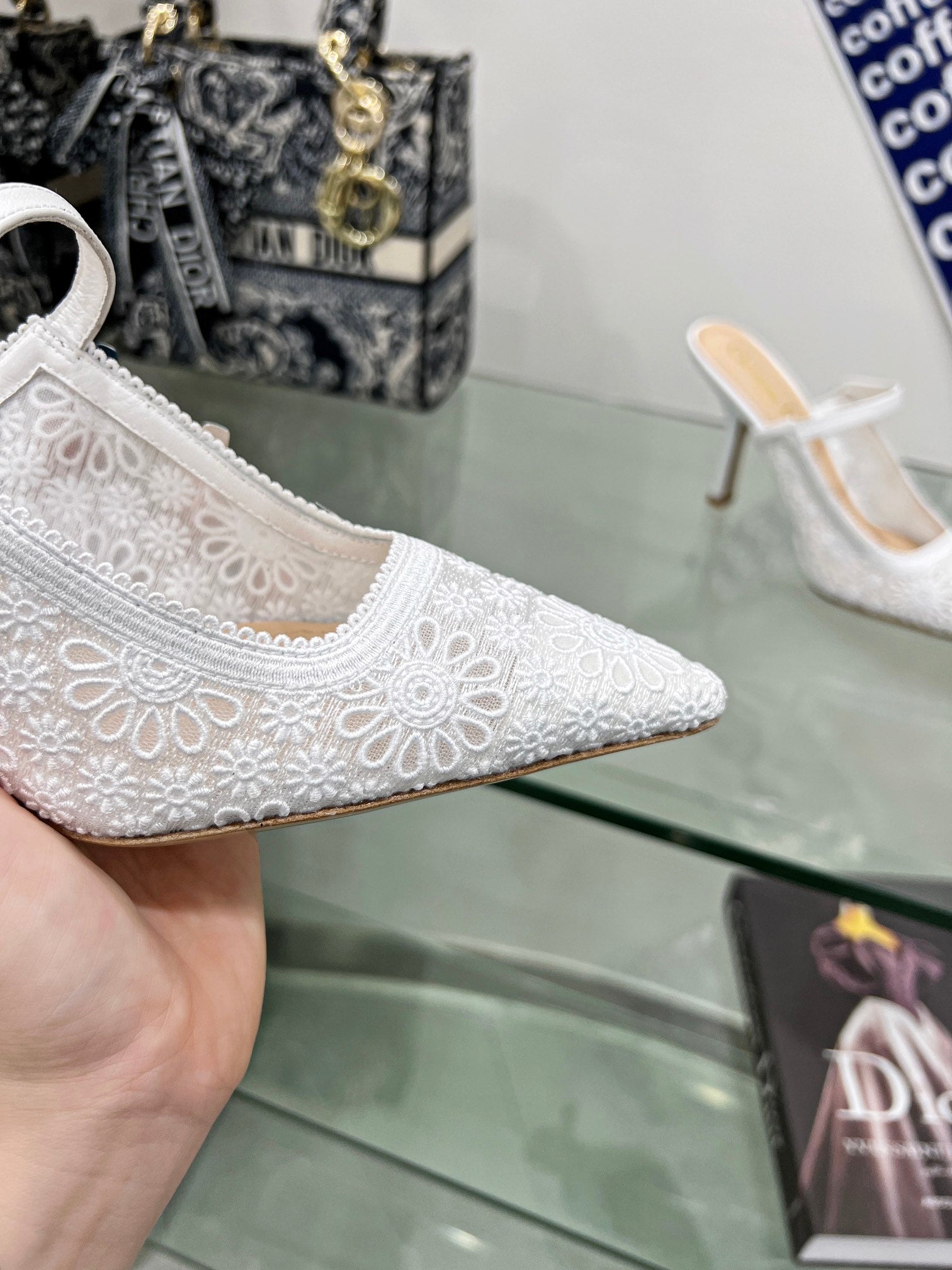 - Material: Calfskin, transparent mesh embroidered