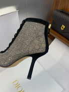 Dior 2025 Capture Heeled Ankle Boot Black Beige Mesh Sheepskin 508531
