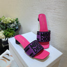 dway heeled slide 35 purple red embroidered cotton