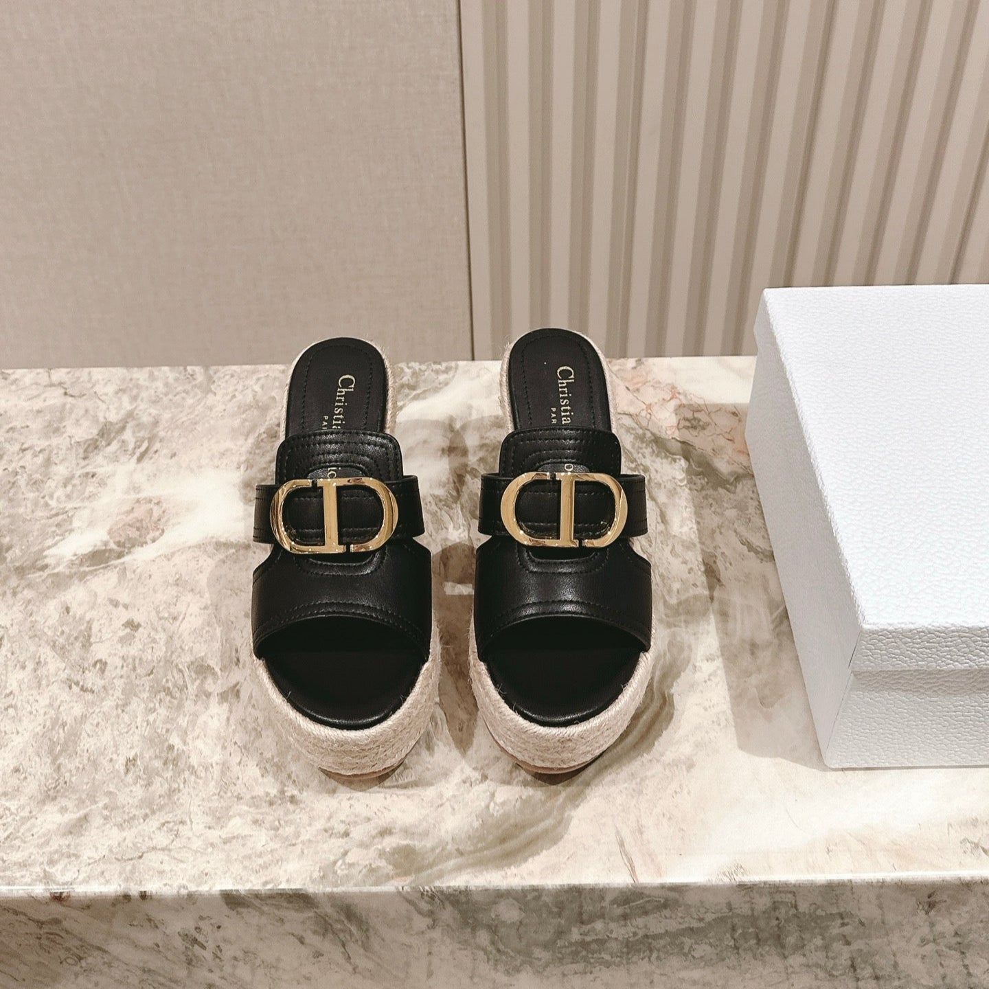 CD D-Club Wedge Sandal 85mm Black Calfskin 483082