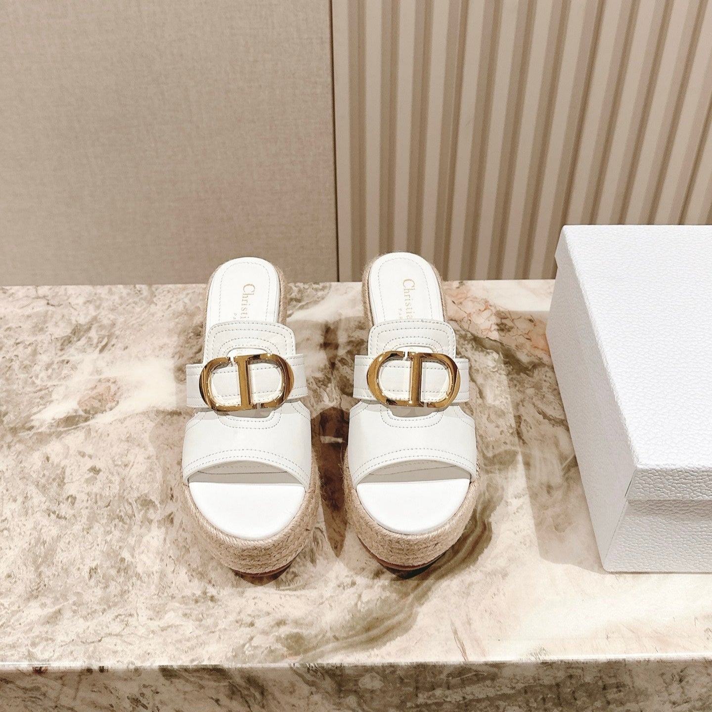 CD D-Club Wedge Sandal 85mm White Calfskin 483080