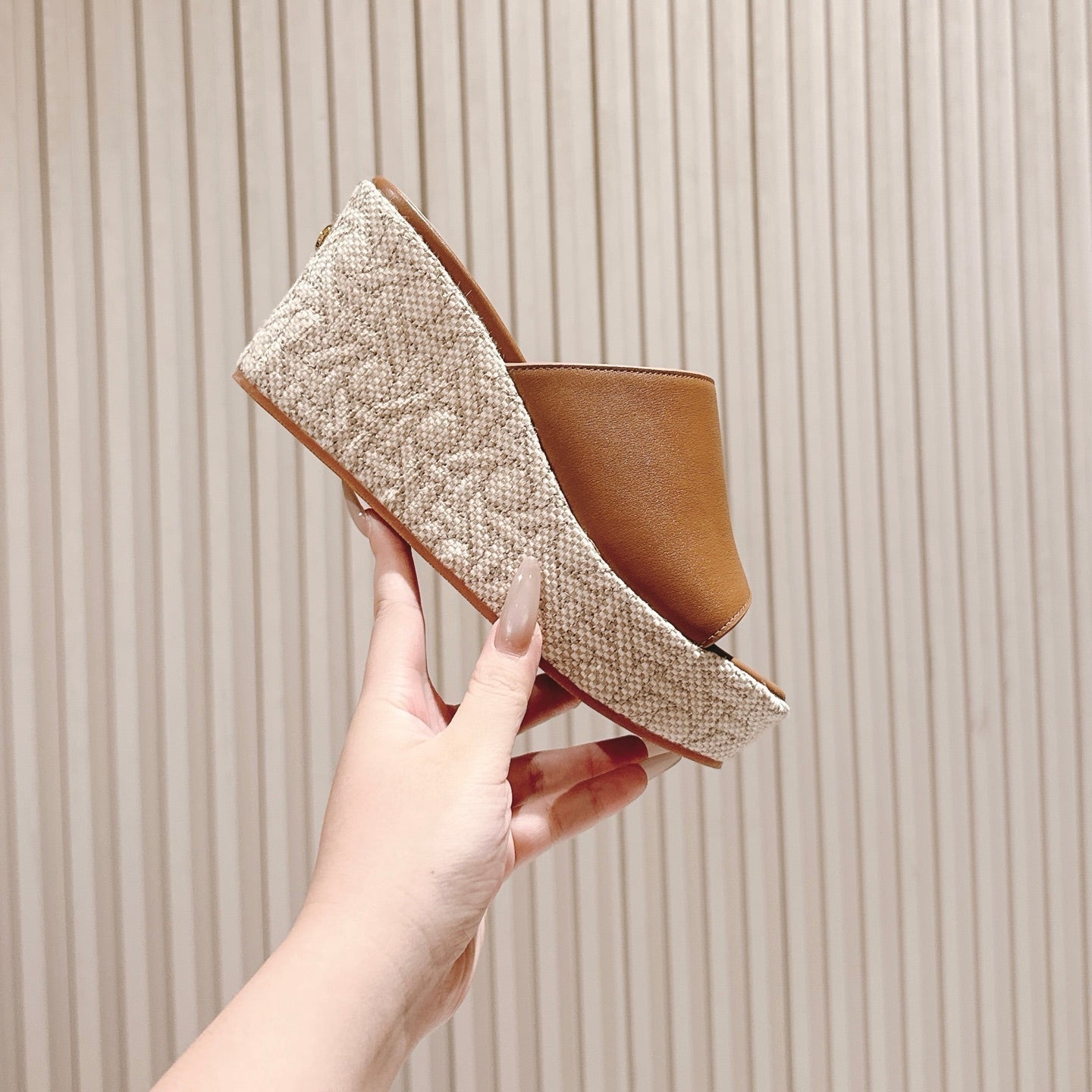 CD Wedge Hemp Sandal 85mm Brown Beige Lambskin 483083