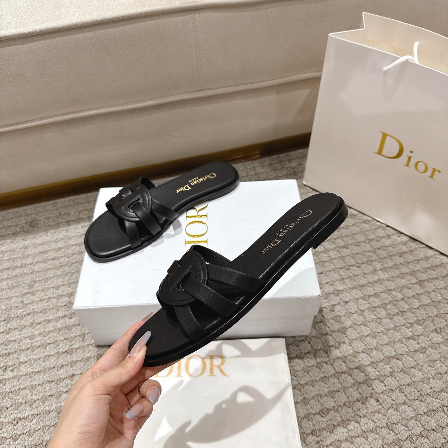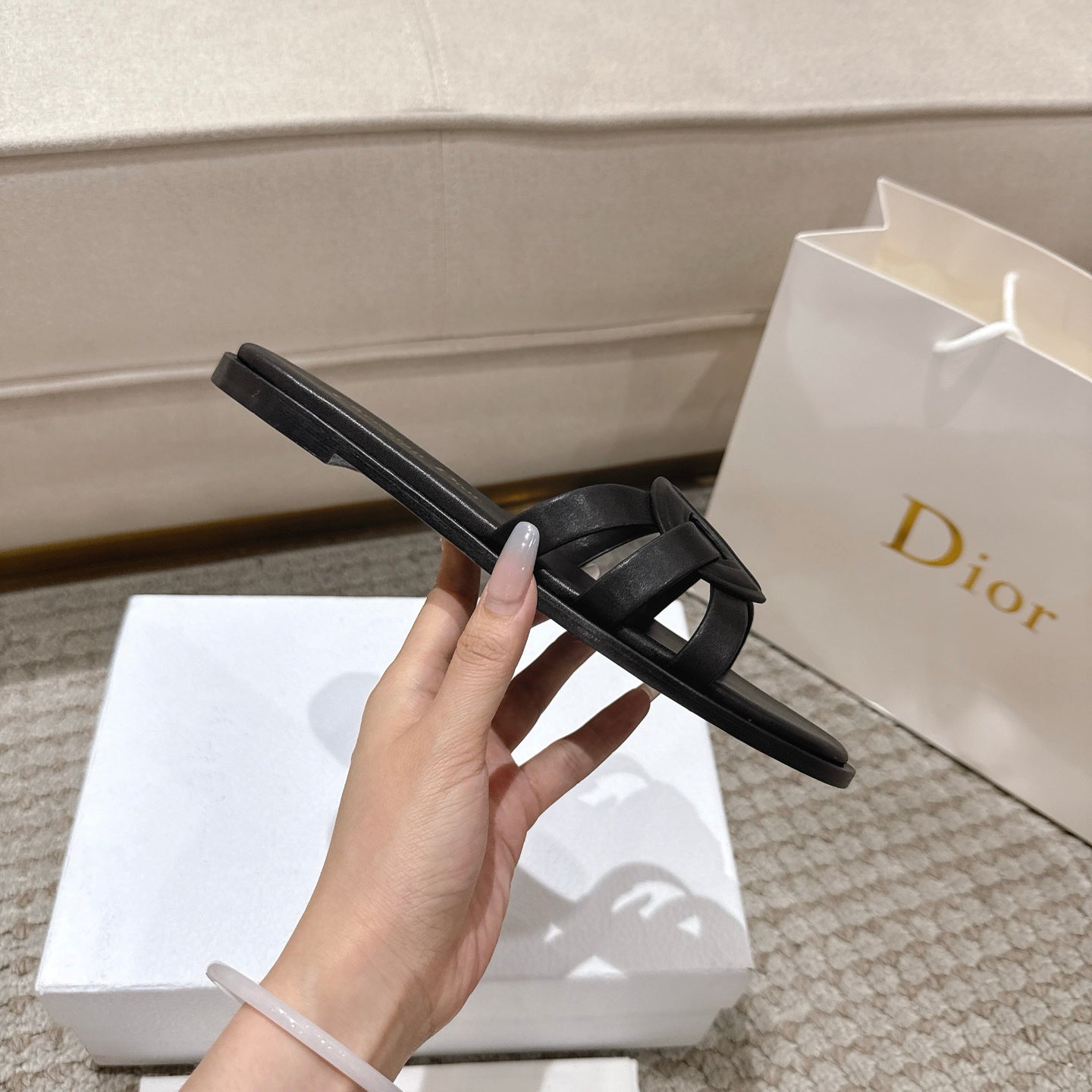 CD Dioract Sandal Beige & Black Cannage Tweed Leather