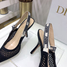 JAdior slingback pumps 95 transparent mesh black embroidered cotton