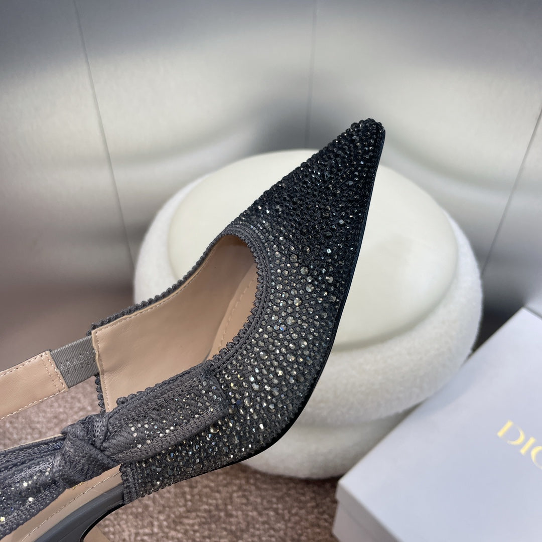 J'Adior Slingback Black Silver-tone Cotton Microbeads
