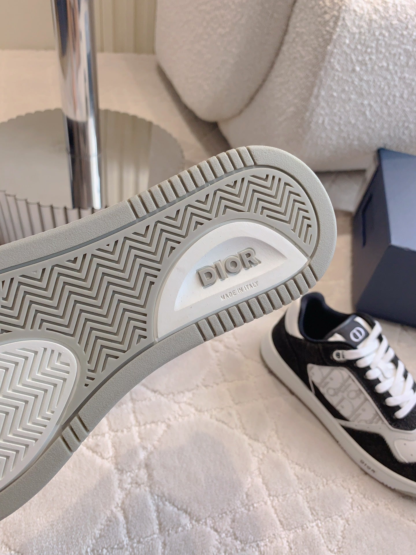 CD B27 Low-Top Sneaker Black White Print Calfskin And Denim Fabric