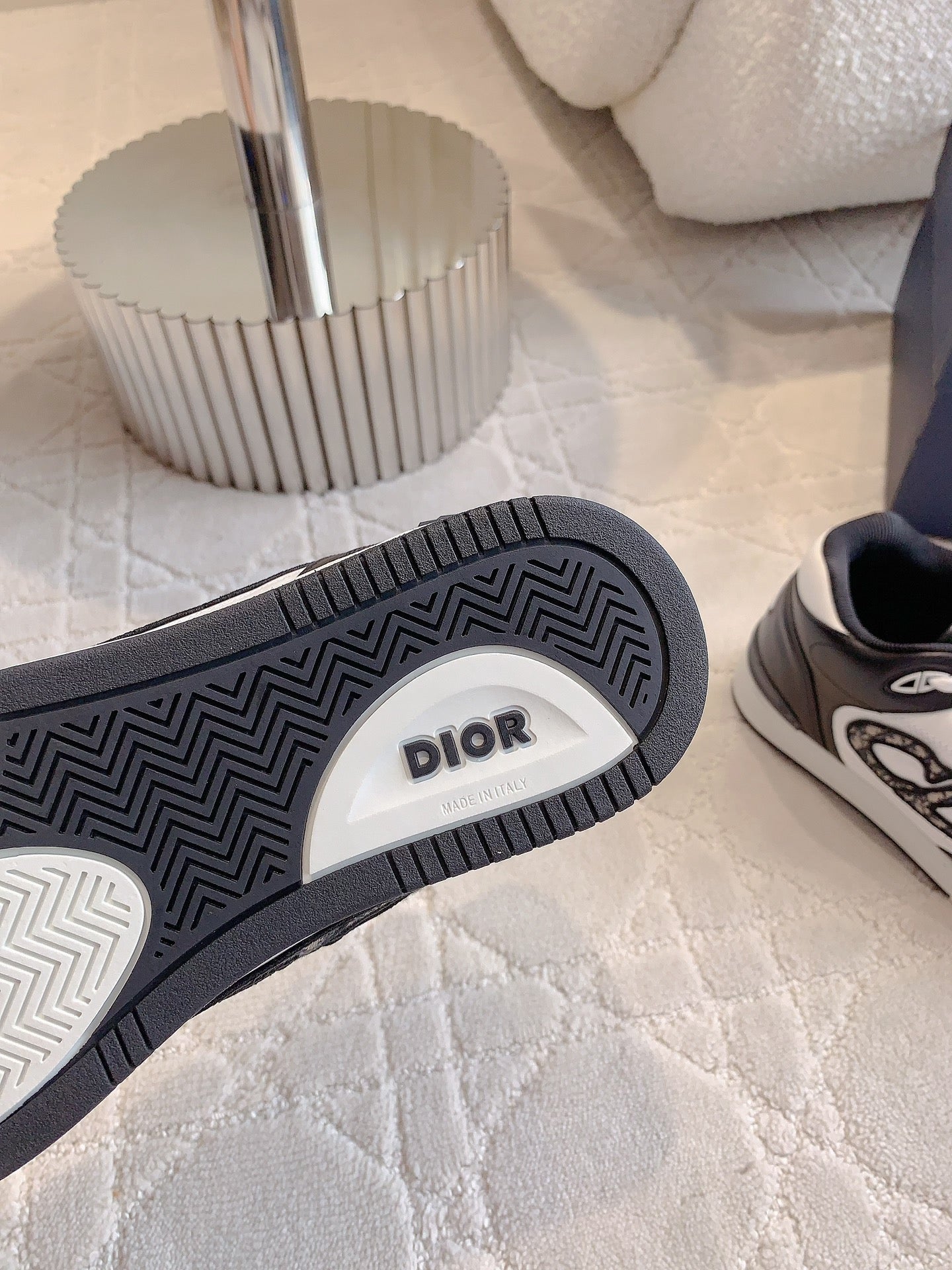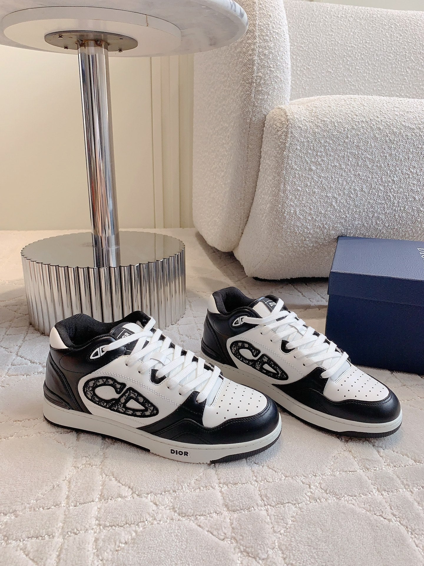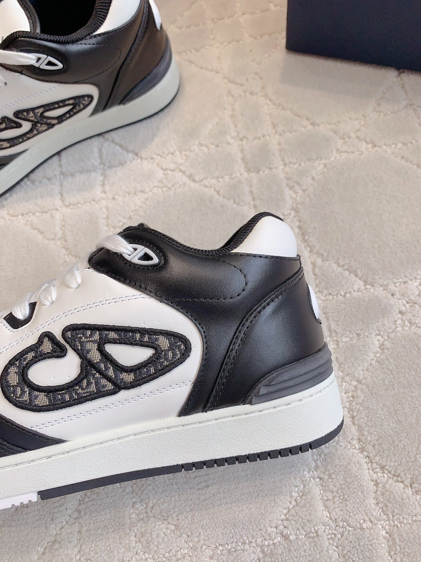 CD B57 Mid-Top Sneaker White Mix Black Calfskin And Oblique Jacquard