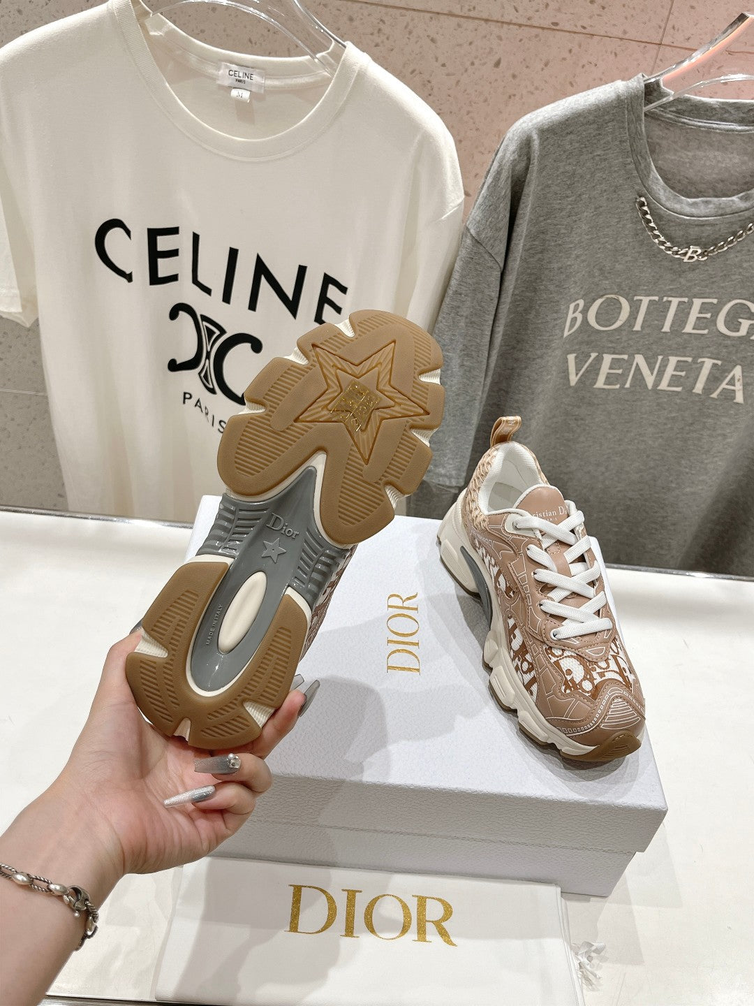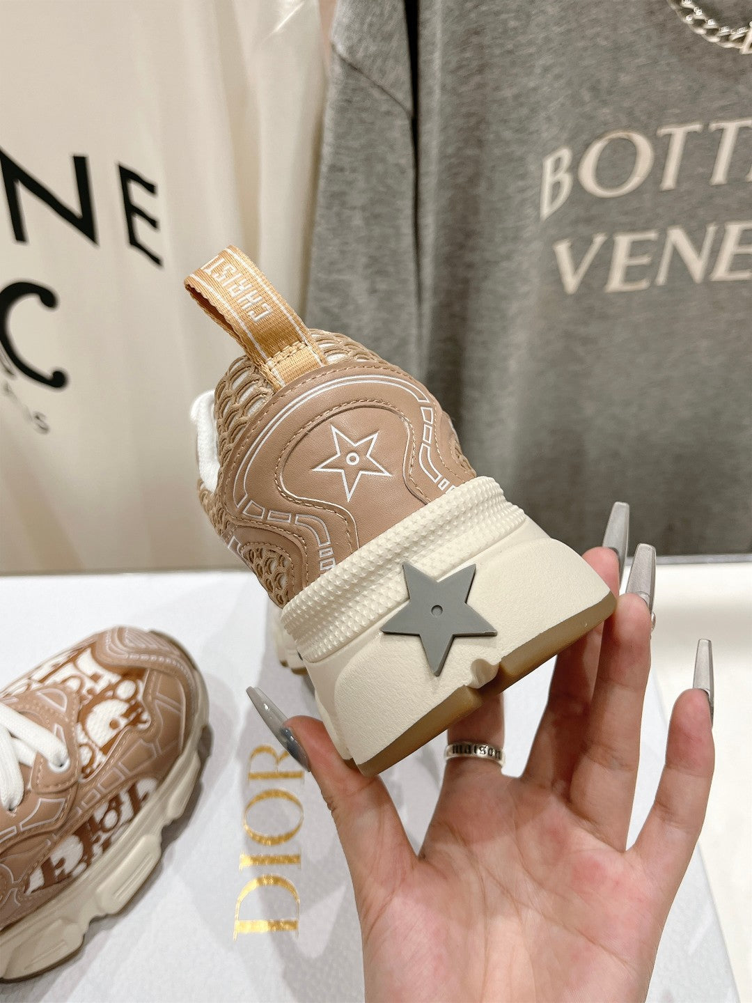CD Vibe Sneaker Beige Brown Polyester Mesh Fabric And Cowhide