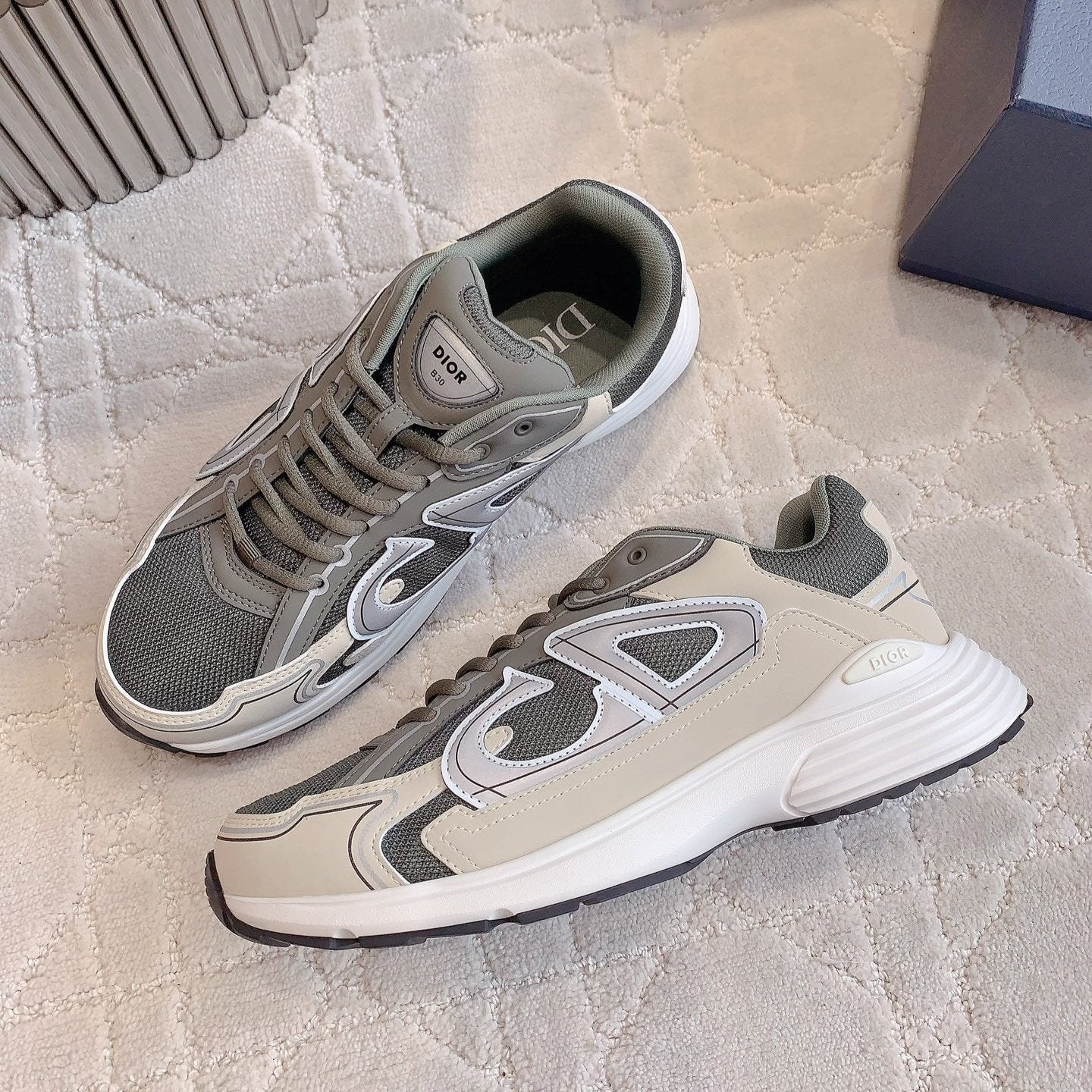 CD B30 Sneaker Grey White Mix Pale Jade Green Polyester Mesh Fabric And Calfskin