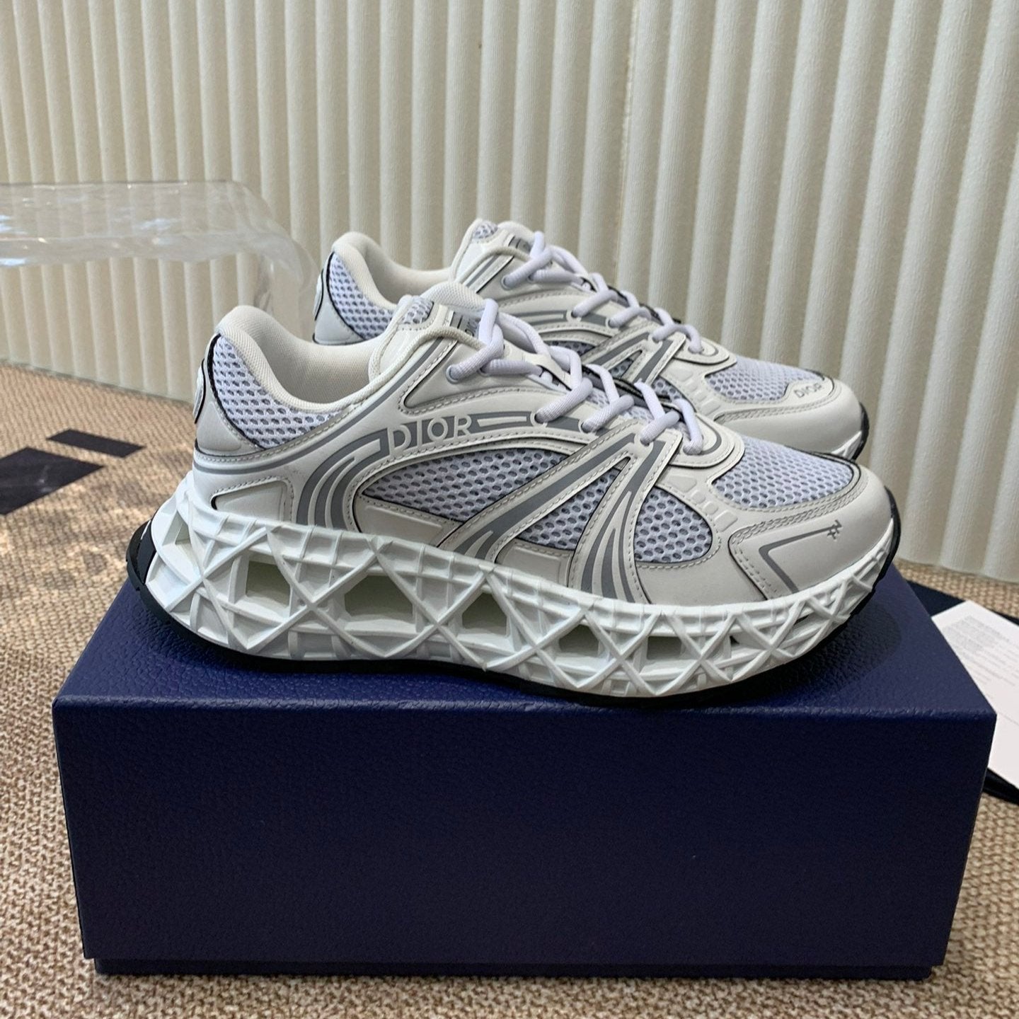 CD B30 Sneaker Blue Grey Mix White Beige Polyester Mesh Fabric And Calfskin