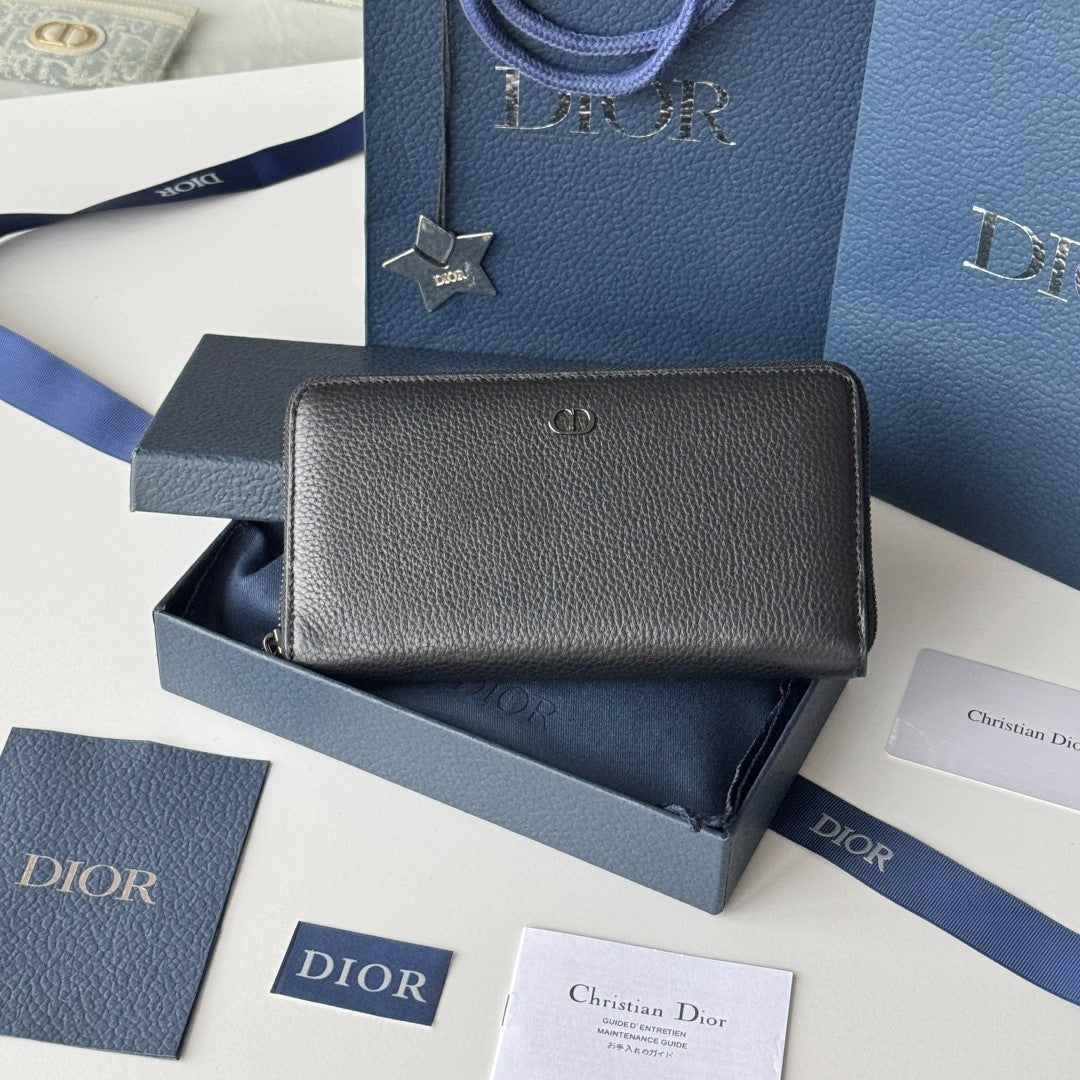 CD Icon Long Zipped Wallet Black Grained Cowhide