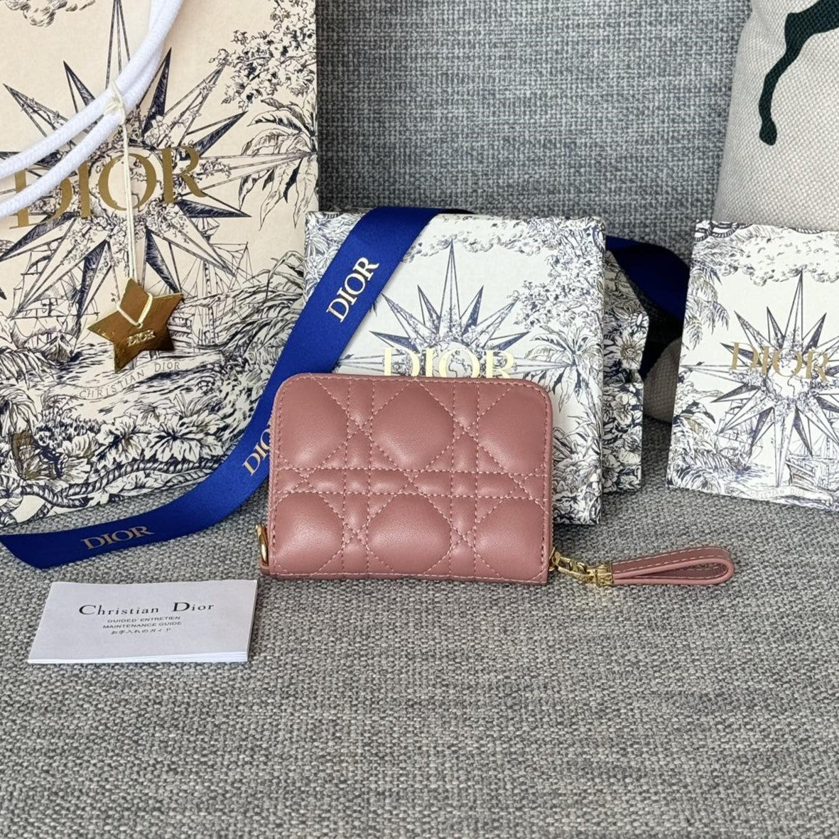 CD Logo Caro 11cm Compact Wallet Dark Pink Calfskin