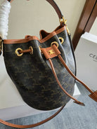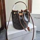 Celine Clara Bag 19 Black Brown Canvas Calfskin