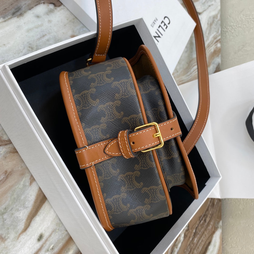 Celine Medium Folco Bag In Triomphe Canvas And Calfskin