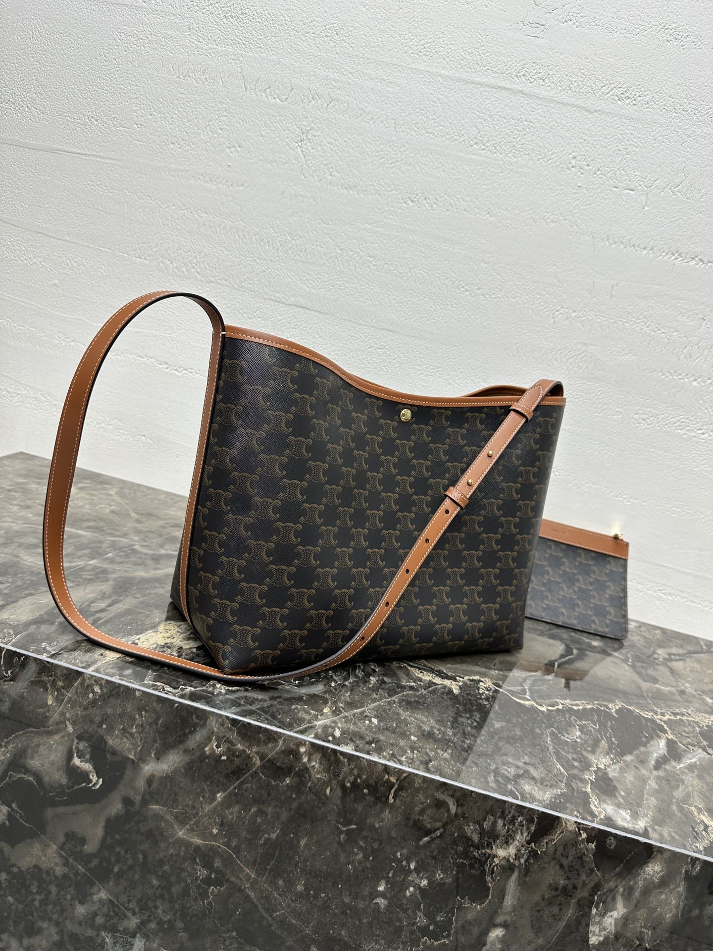 Celine Soft Shopper Bag in Triomphe Brown Black Canvas and Calfskin