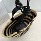 Celine Teen Supple Classic Panier 22cm Black Calfskin Black Beige Raffia