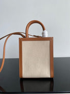 mini vertical cabas 17cm white canvas tan calfskin