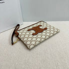 SMALL POUCH 25 IN BEIGE TRIOMPHE TEXTILE AND BROWN CALFSKIN