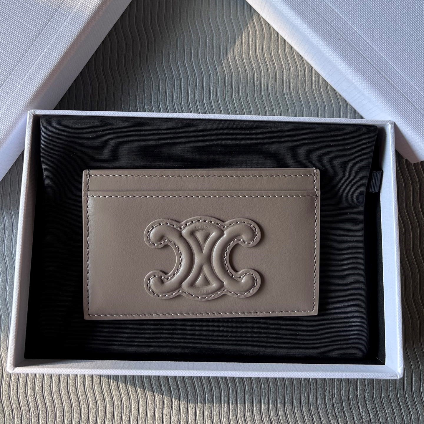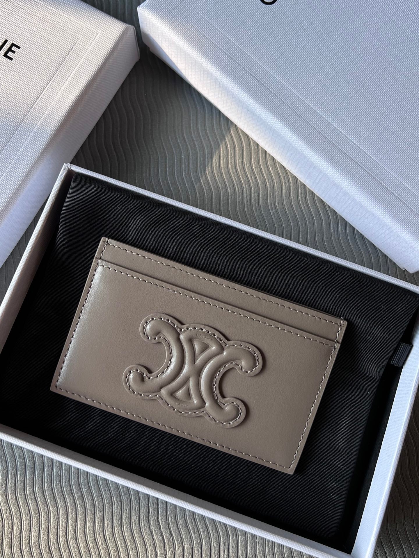 TRIOMPHE 10B703 Card Holder Modern Taupe Cowhide Leather