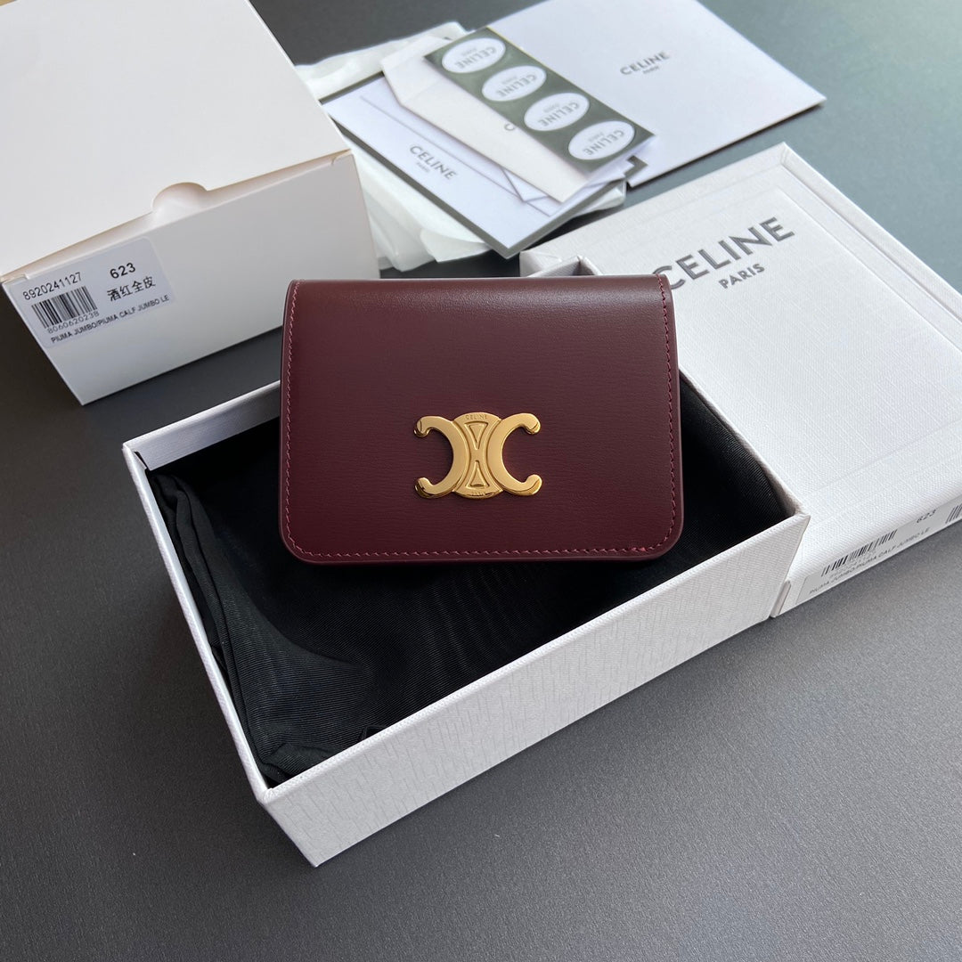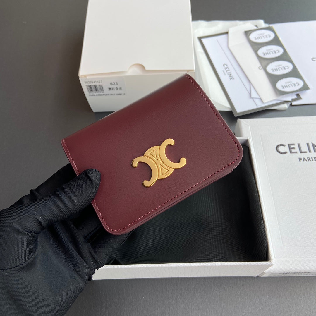TRIOMPHE 622 Compact Wallet Burgundy Leather