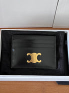 TRIOMPHE Card Holder Black Cowhide& Fabric GHW