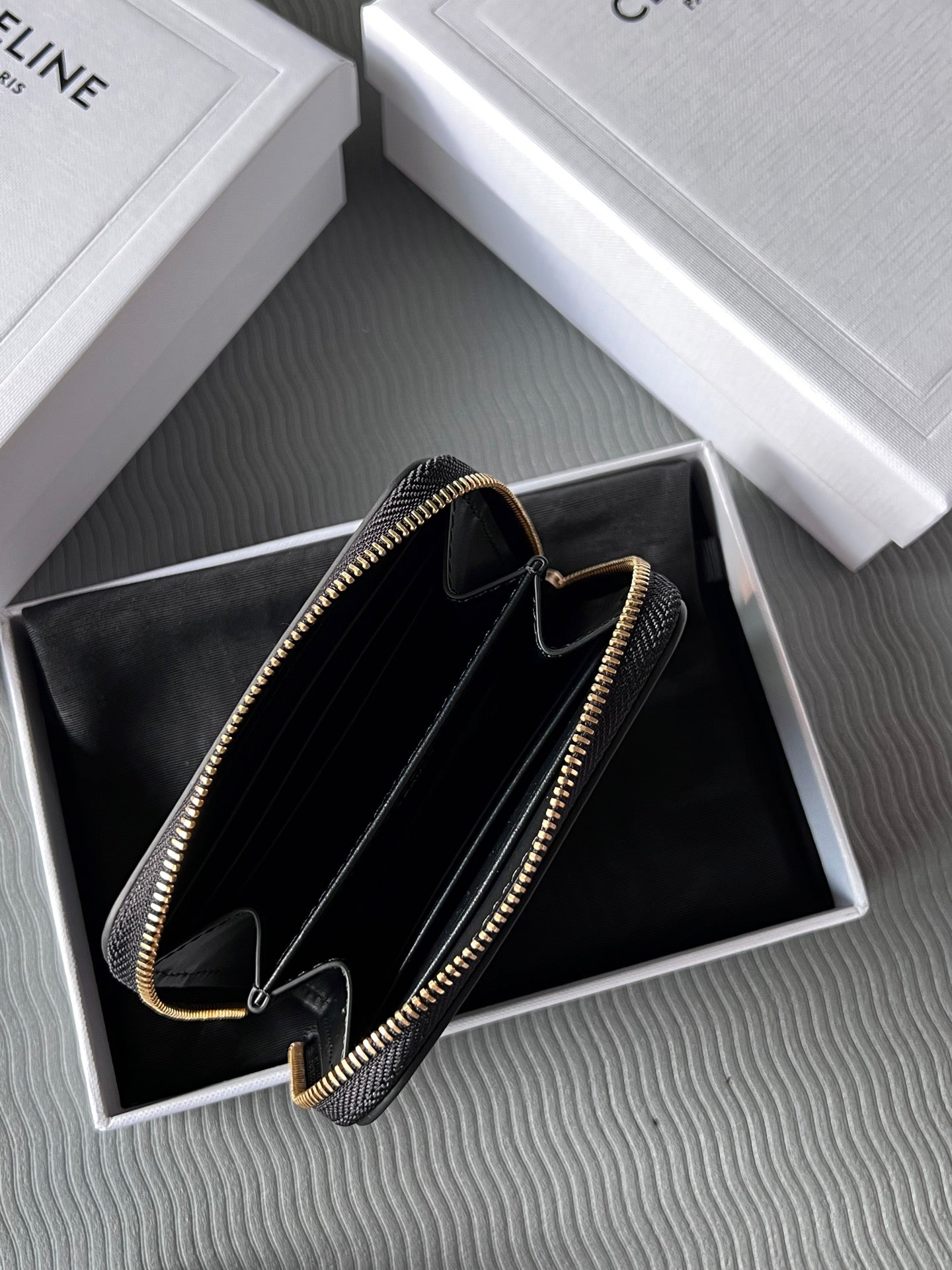 TRIOMPHE Compact Zipped Wallet Black Cowhide Leather