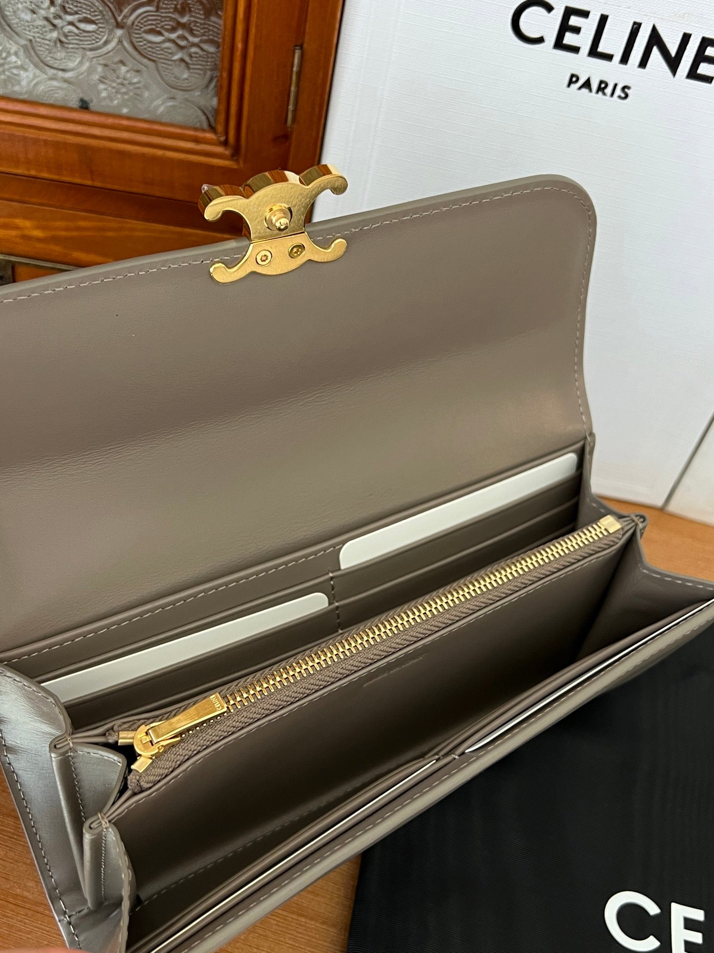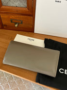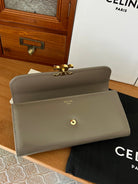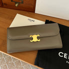 TRIOMPHE Flap Wallet Card Holder 19cm Khaki Shiny Cafskin