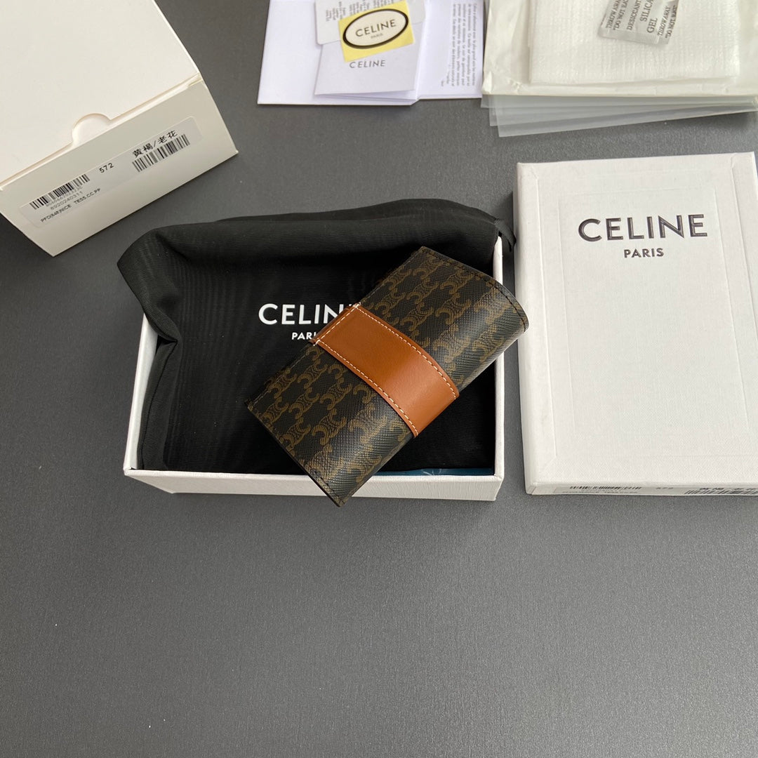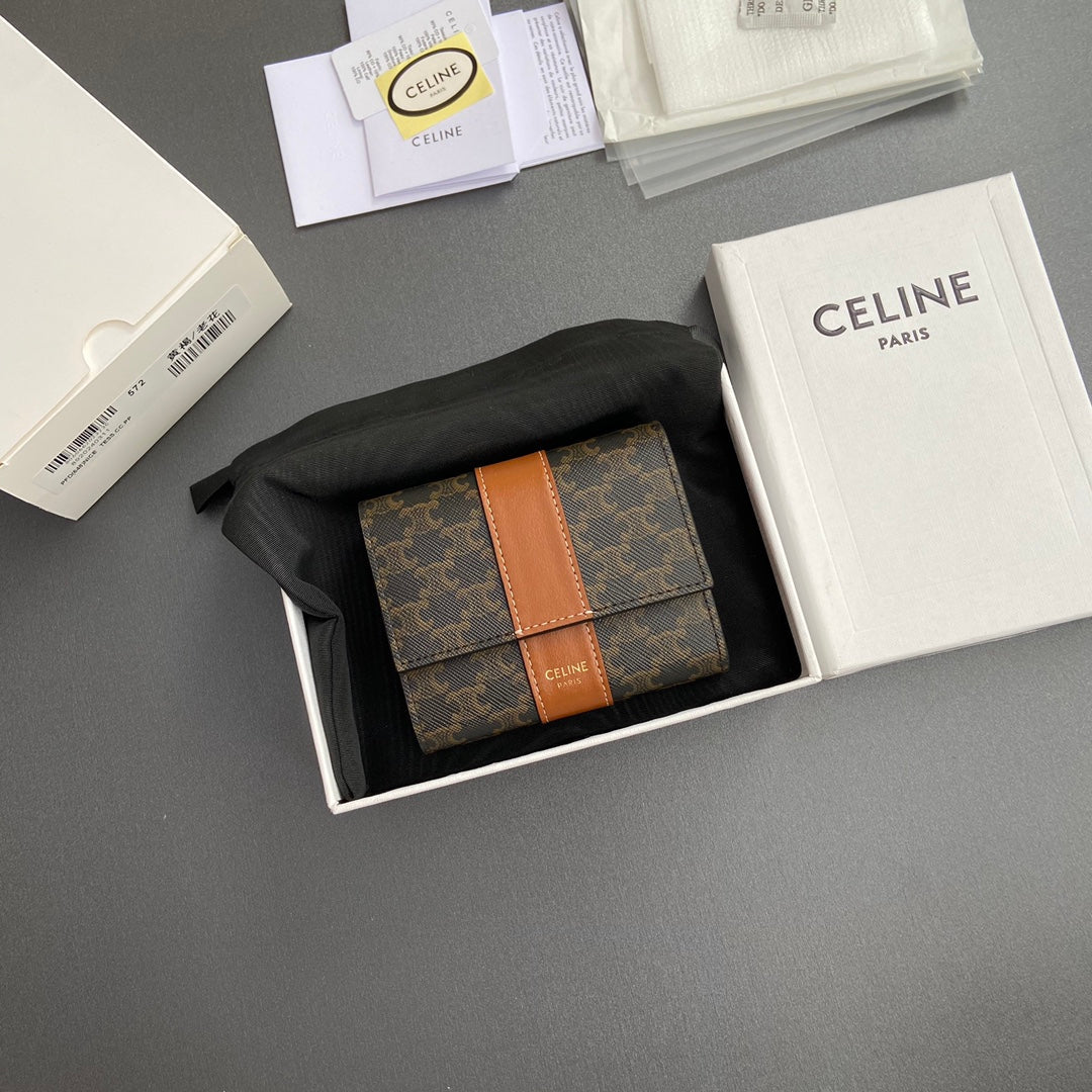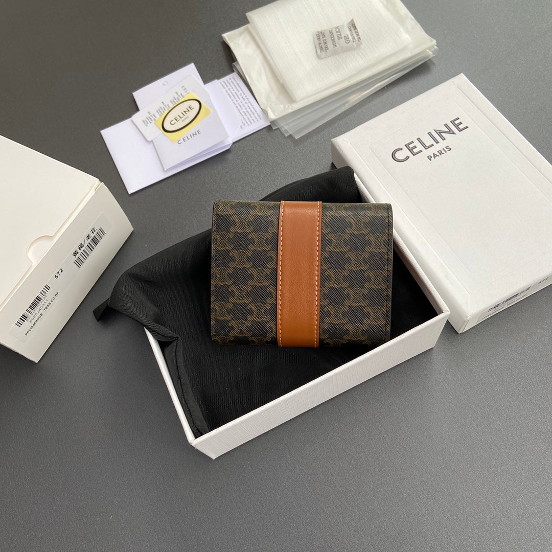 TRIOMPHE Tri-fold Wallet Tan Grain Cowhide