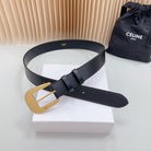 LARGE WESTERN 35 MM BELT BLACK CALFSKIN GOLD HARDWARE