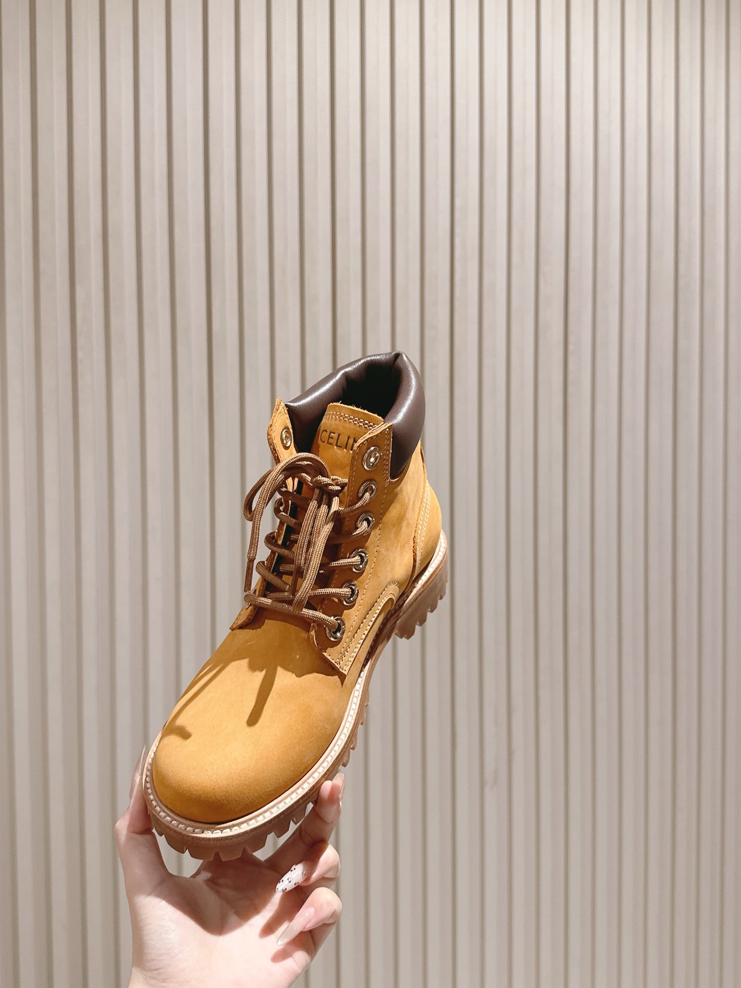 CELINE Kurt Lace-Up Martin Short Boots Light Brown Nubuck Calfskin 452782