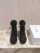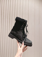 CELINE Kurt Lace-Up Mid Boot Black Nubuck Calfskin And Shearling 452787