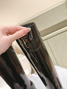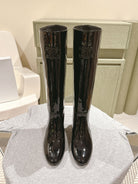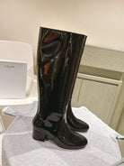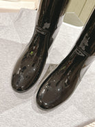 CELINE Les Bottes Triomphe Zipped Long Boot Black Patent Calfskin 452696