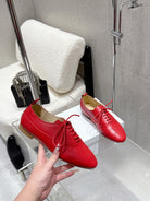 Celine 25 Lise Perforated Triomphe Richelieu Shoe Red Lambskin 554197