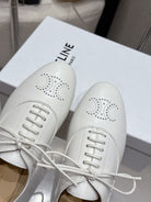 Celine 25 Lise Perforated Triomphe Richelieu Shoe White Lambskin 554196
