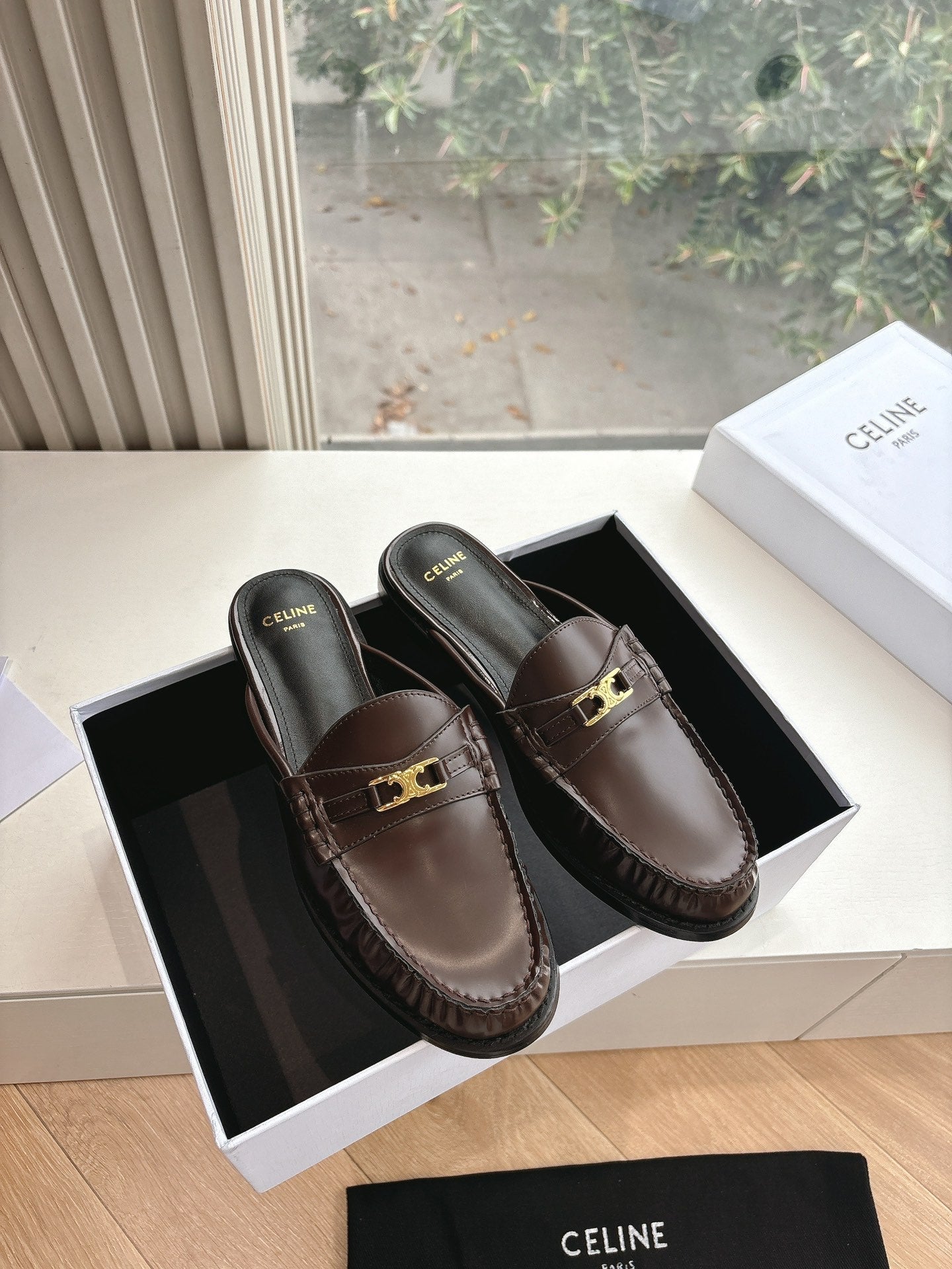 CELINE Slippers Brown Leather 285953