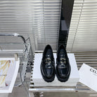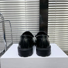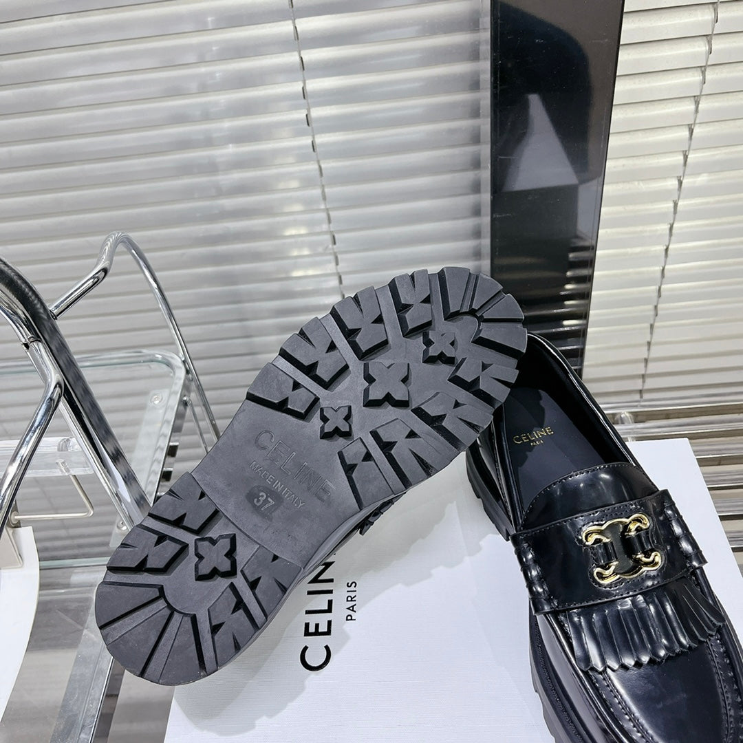 MARGARET CHUNKY LOAFER WITH FRINGES AND TRIOMPHE CHAIN IN POLISHED BULL BLACK