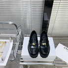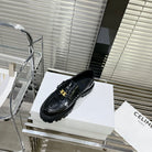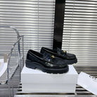 MARGARET CHUNKY LOAFER WITH FRINGES AND TRIOMPHE CHAIN IN POLISHED BULL GLOSSY BLACK