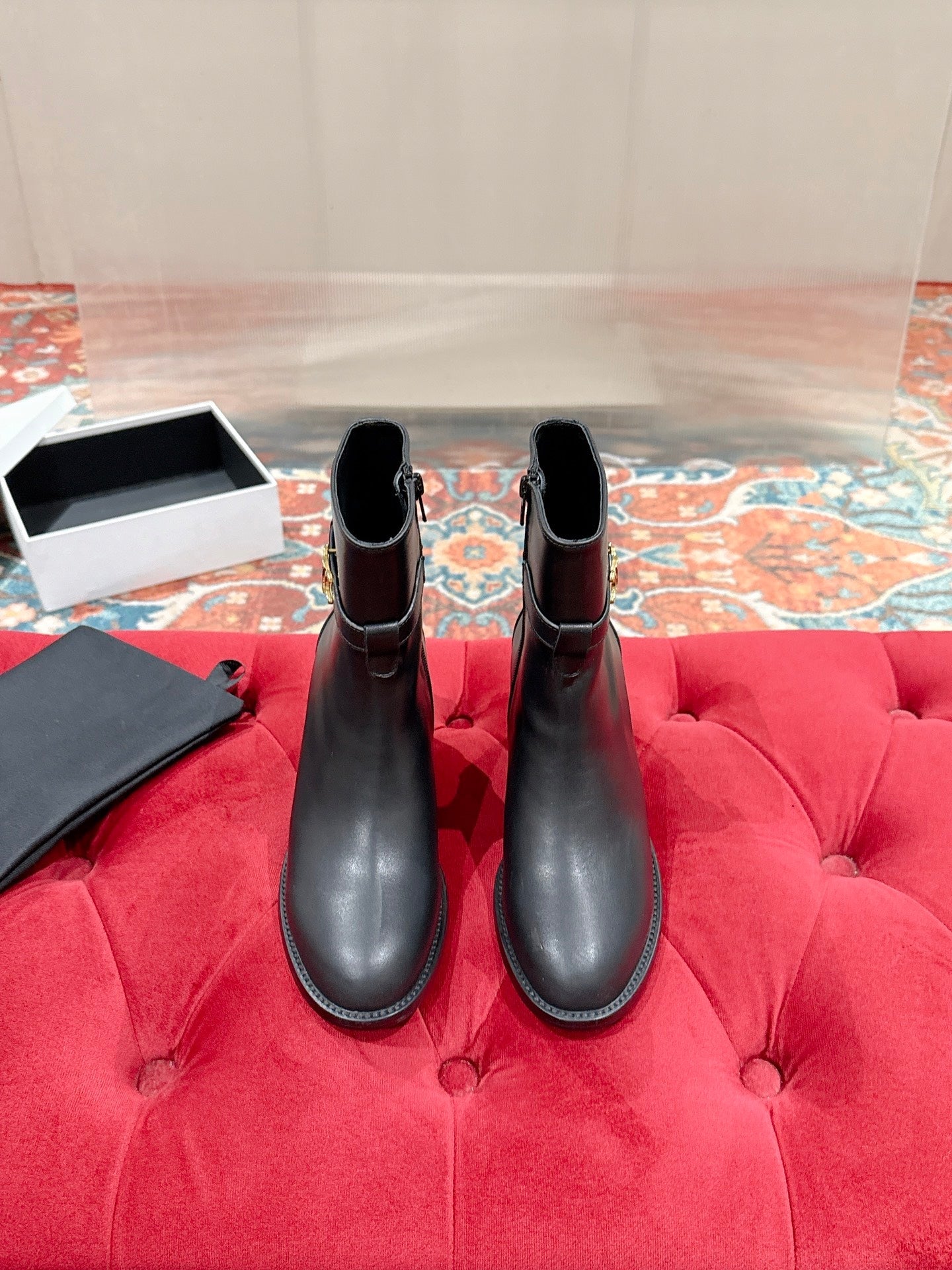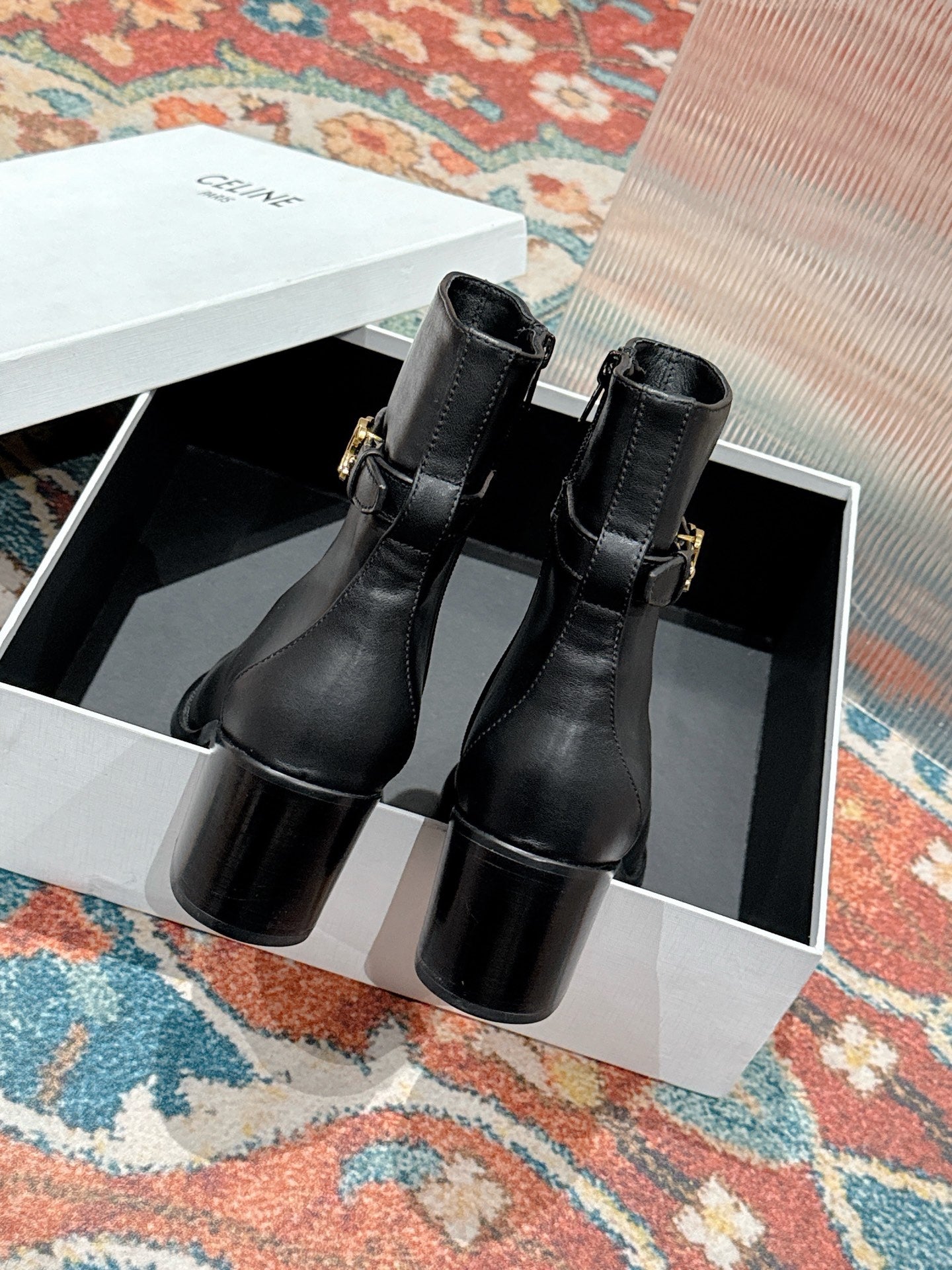 Celine Garance Triomphe Strap Boot 60mm Black Calfskin