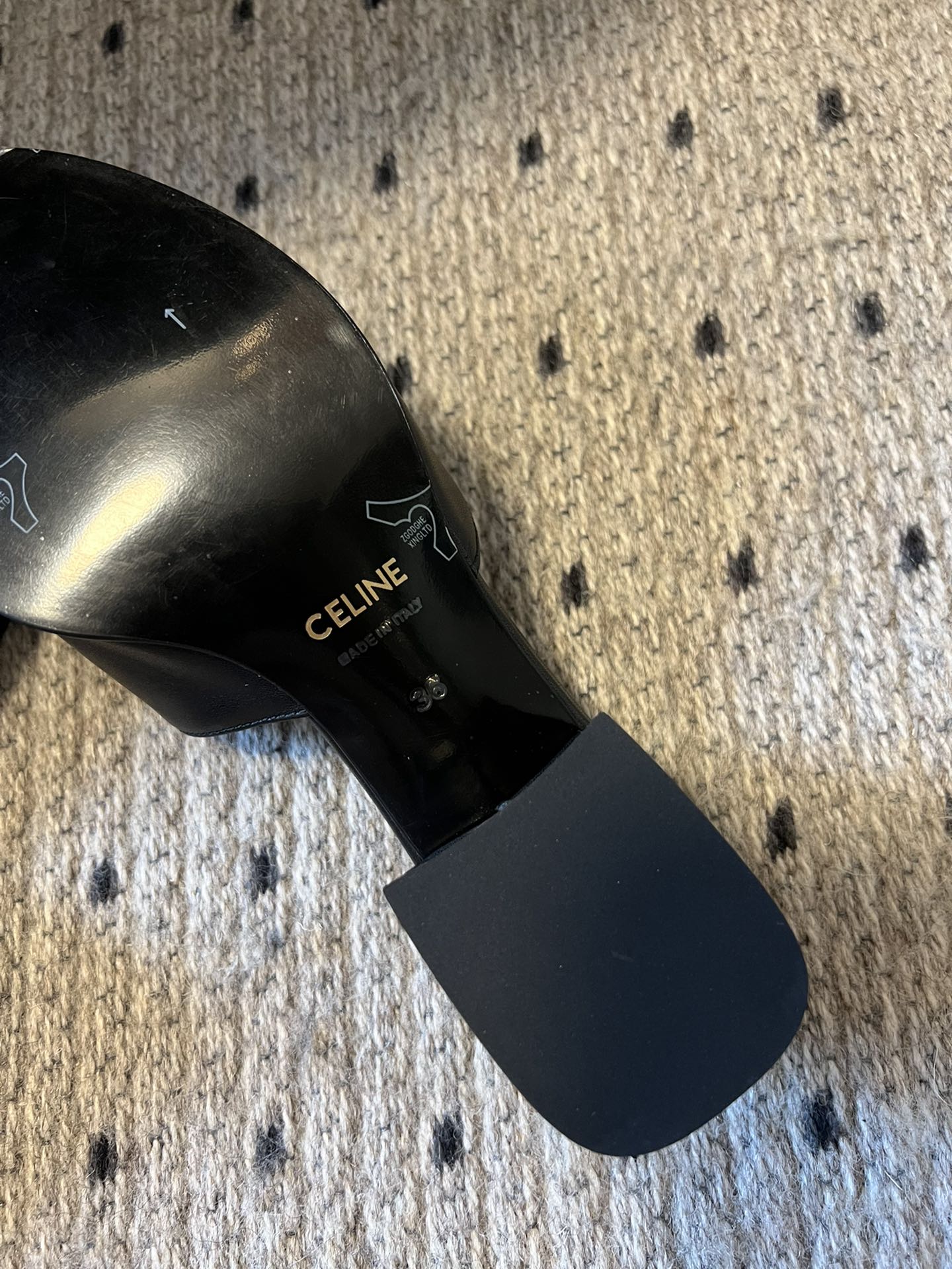 CLEMENCE MULE IN BLACK LAMBSKIN AND PATENT CALFSKIN