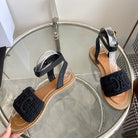LYMPIA SANDAL IN BLACK TRIOMPHE MACCRAMÉ COTTON AND CALFSKIN