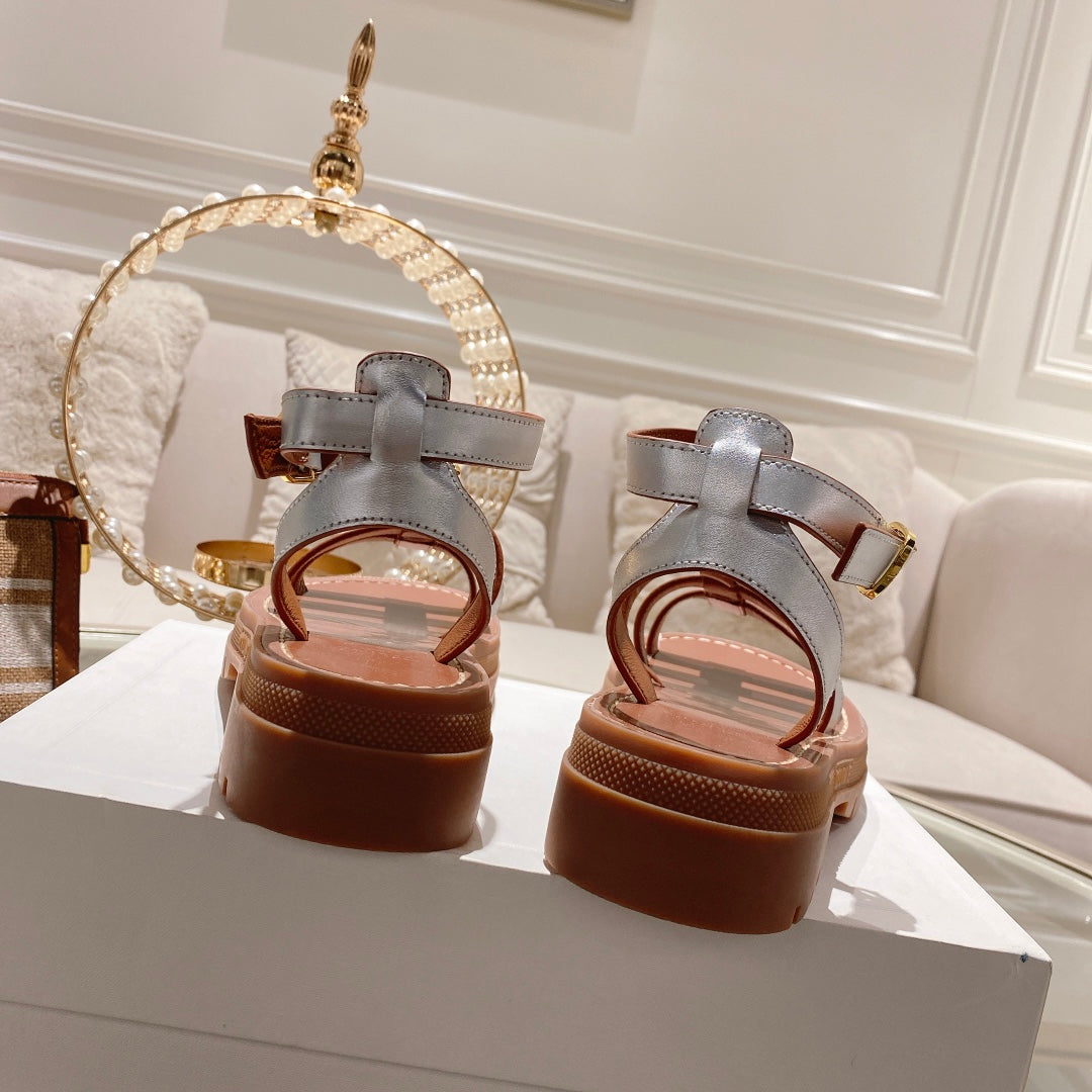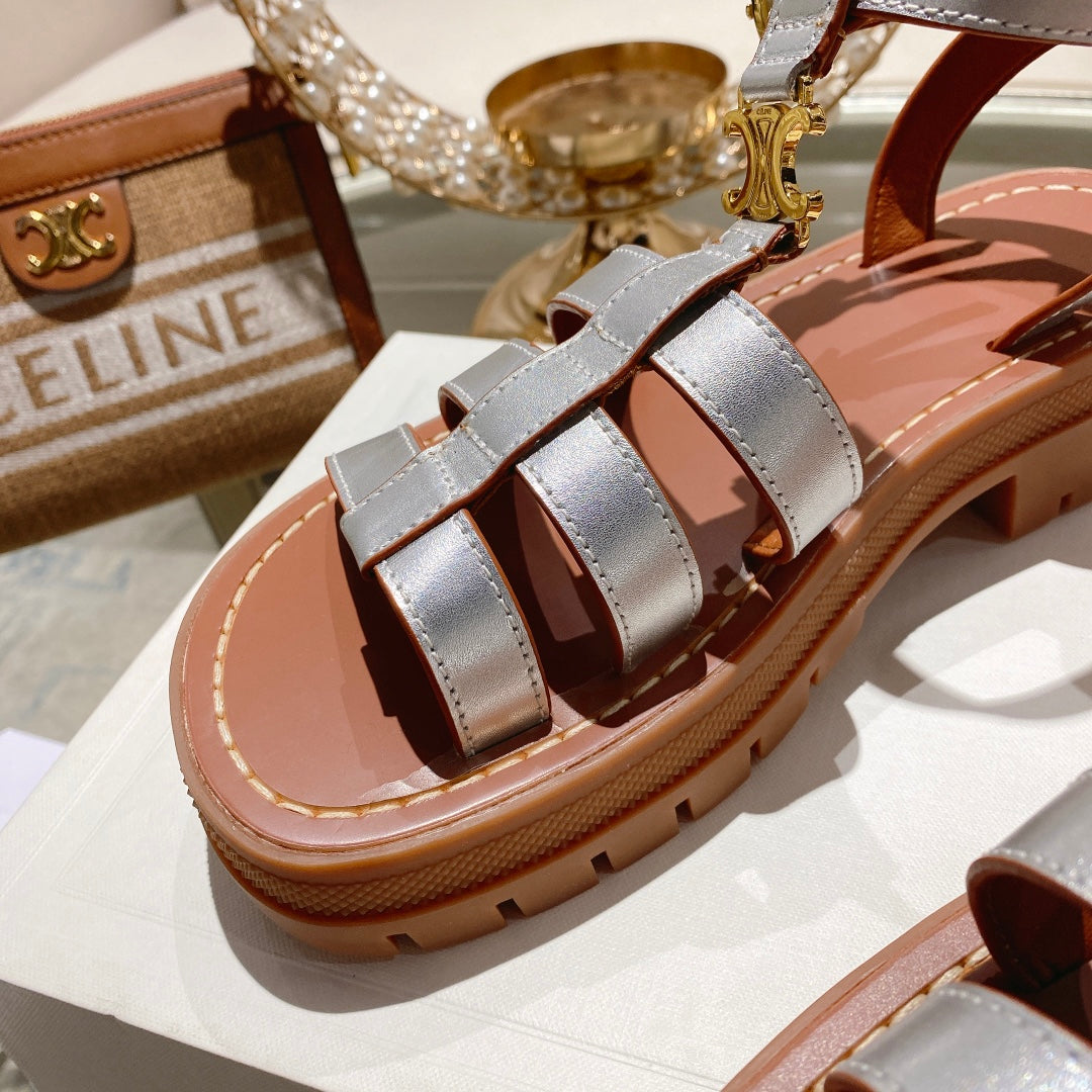 CL Clea Triomphe Gladiator Sandal 40mm Silver Metallic Mix Tan Calfskin 600367