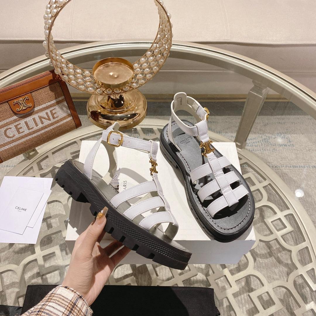 CL Clea Triomphe Gladiator Sandal 40mm White Black Calfskin 600371