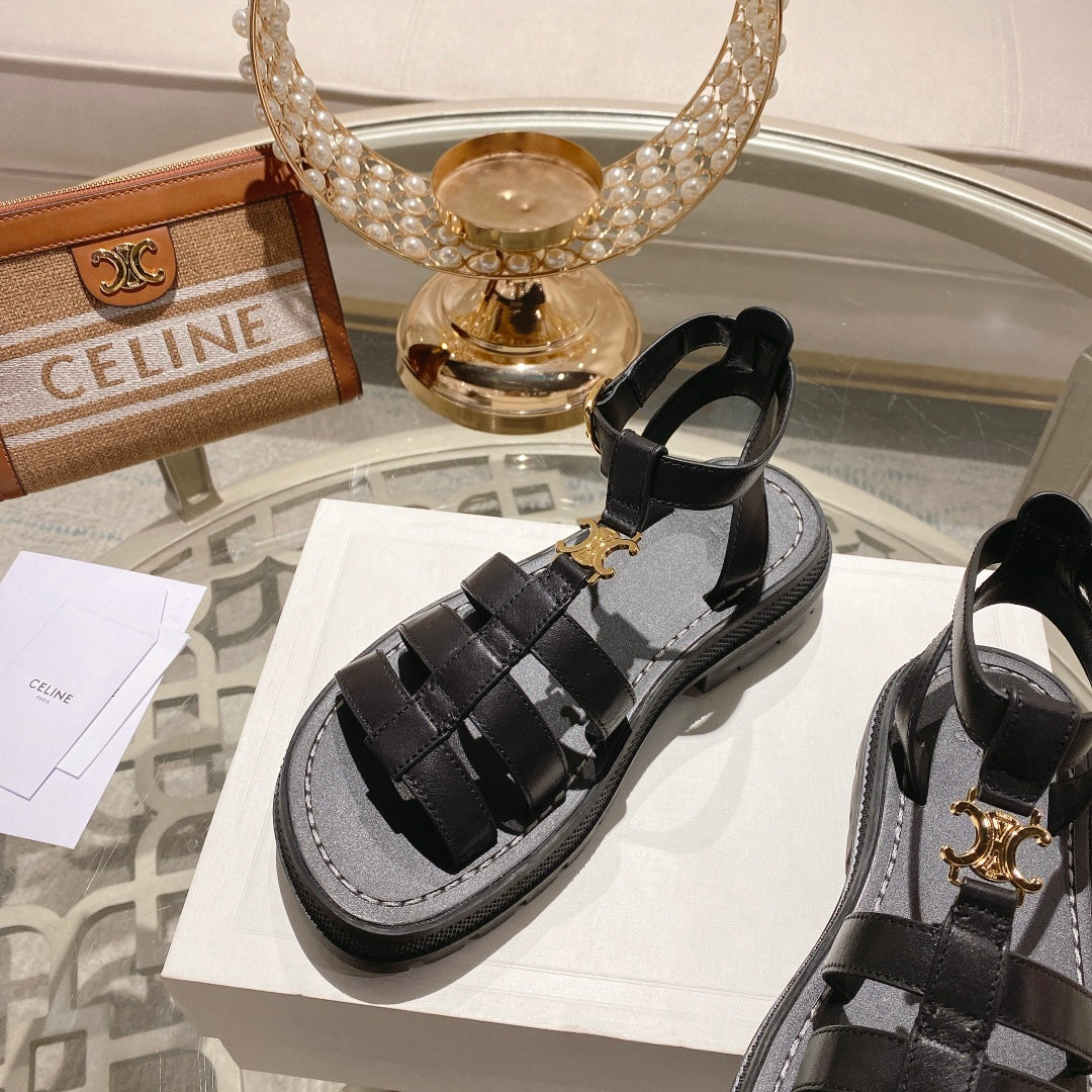 CELINE 25 Sline Sandal Black Sheepskin 285910
