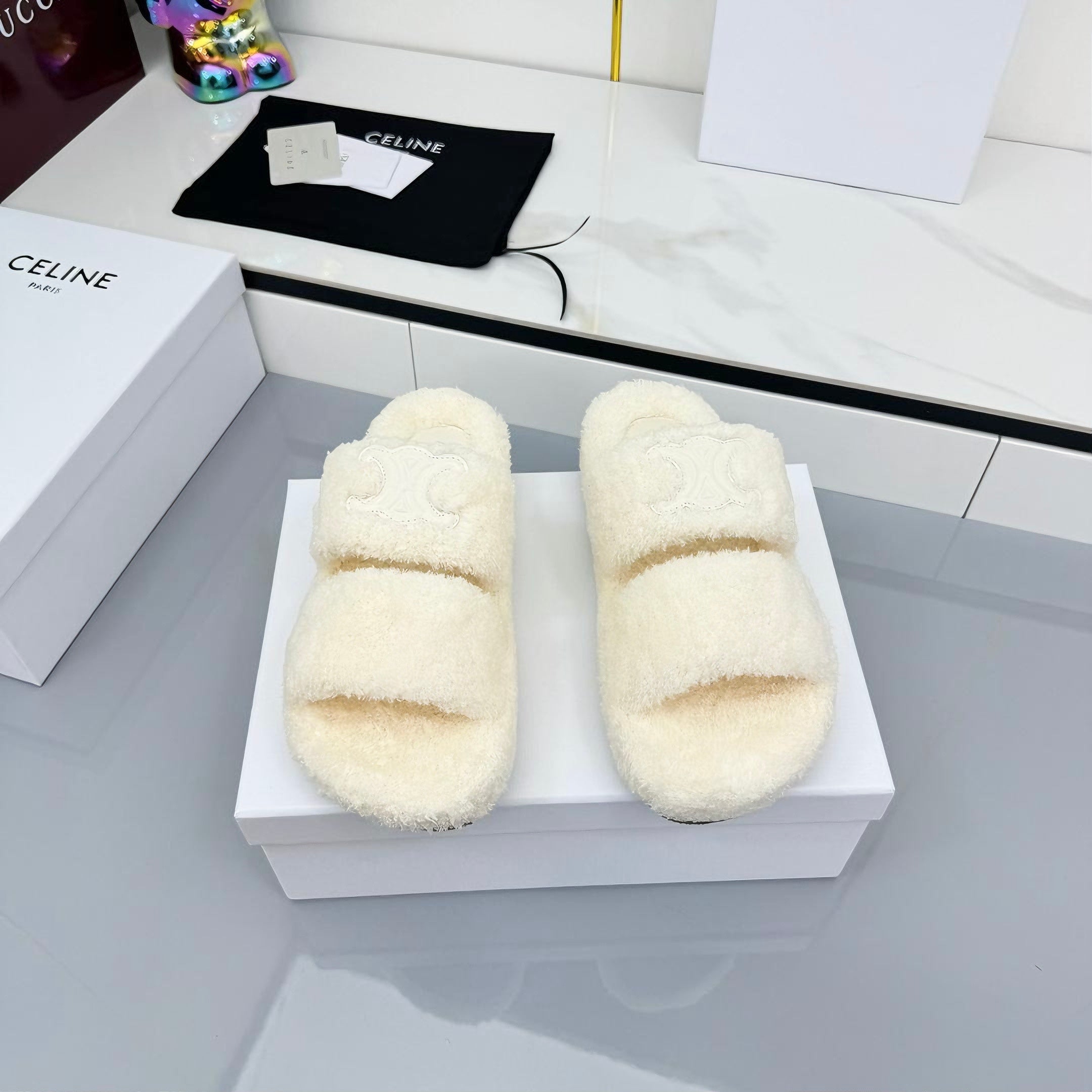 CL 25s Triomphe Slides 50mm White Wool & Rubber 434464