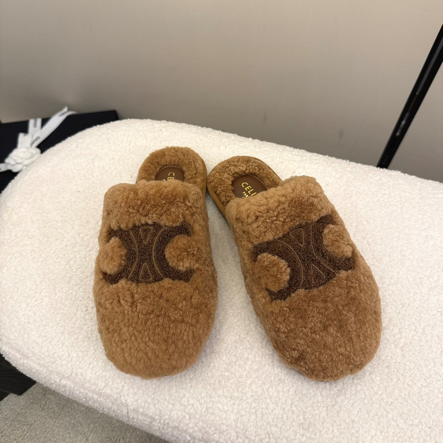 Celine Arc de Triomphe slippers Brown Sheepskin