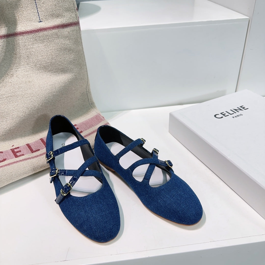 FLAT MARY JANE IN NAVY BLUE FABRIC