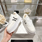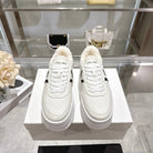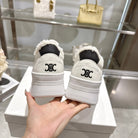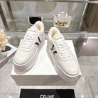 Celine Block Triomphe Leather Wedge Sneakers 50mm Black White Calfskin Fur