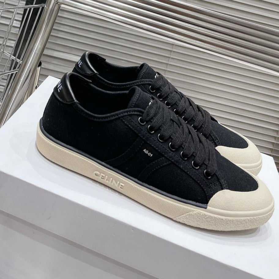JANE SNEAKERS LOW LACE-UP WITH TRIOMPHE PATCH IN CANVAS AND CALFSKIN BLACK
