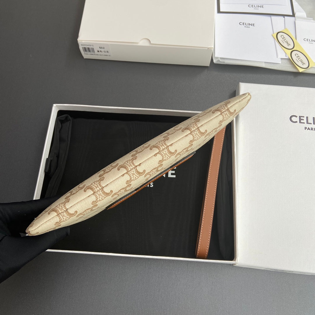 TRIOMPHE PRINT Small Pouch Tan Beige Cowhide